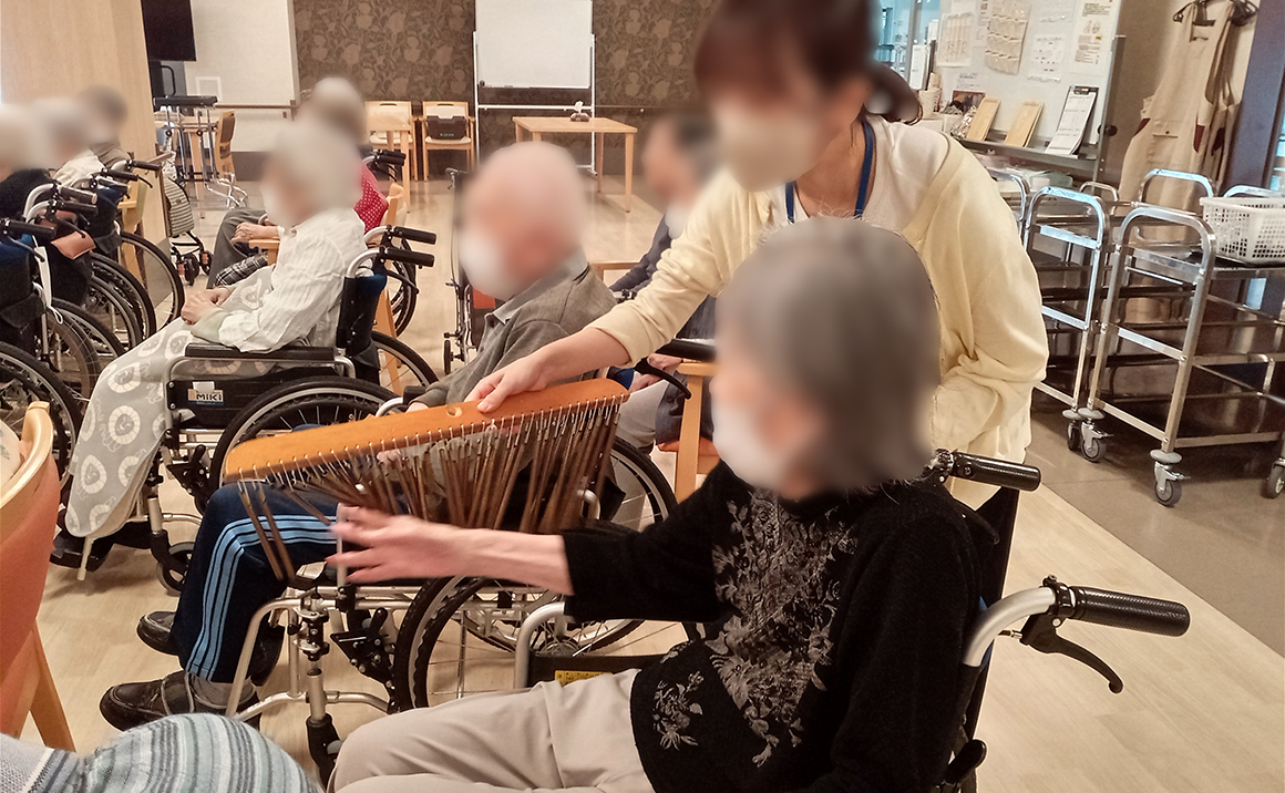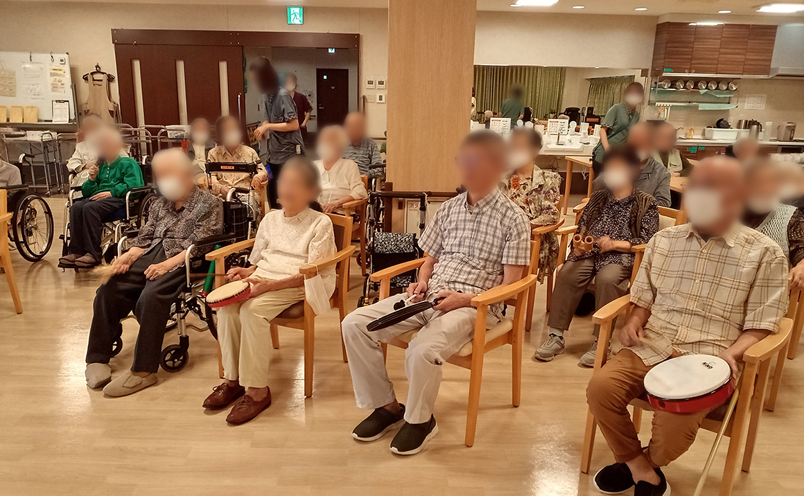 当施設では、ご入居者様の心身の健康を支える取り組みの一環として音楽療法を導入しております。