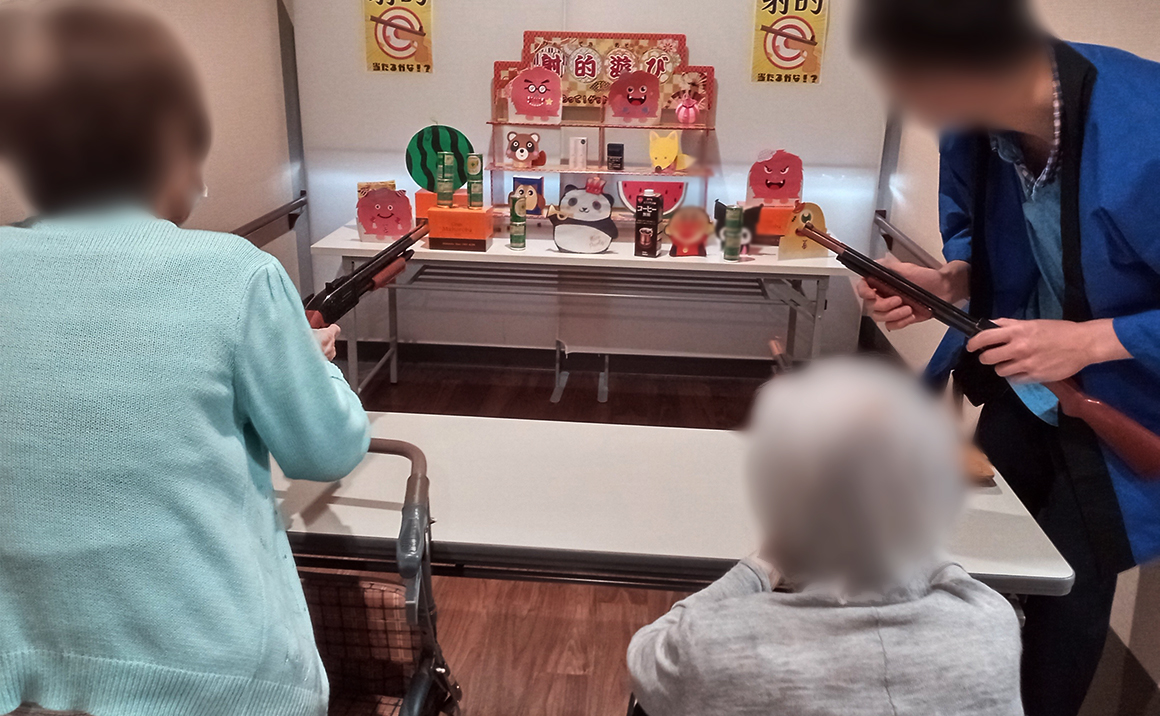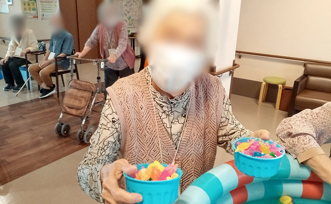 今年も、待ちに待った夏祭りが開催されました。 提灯が食堂や談話室に飾られ祭囃子が流れる雰囲気に入居者様もワクワクされています。 あひるすくい・輪投げ・射的のゲームコーナーでは、童心に返ったような楽しそうな声が響き渡り、楽しそうな笑顔が見られました♪ ゲームでの真剣な眼差しや嬉しそうな様子を見て職員も楽しませていただきました! 来年もさらに楽しんでいただけるような夏祭りを開催したいと思っております(^^♪