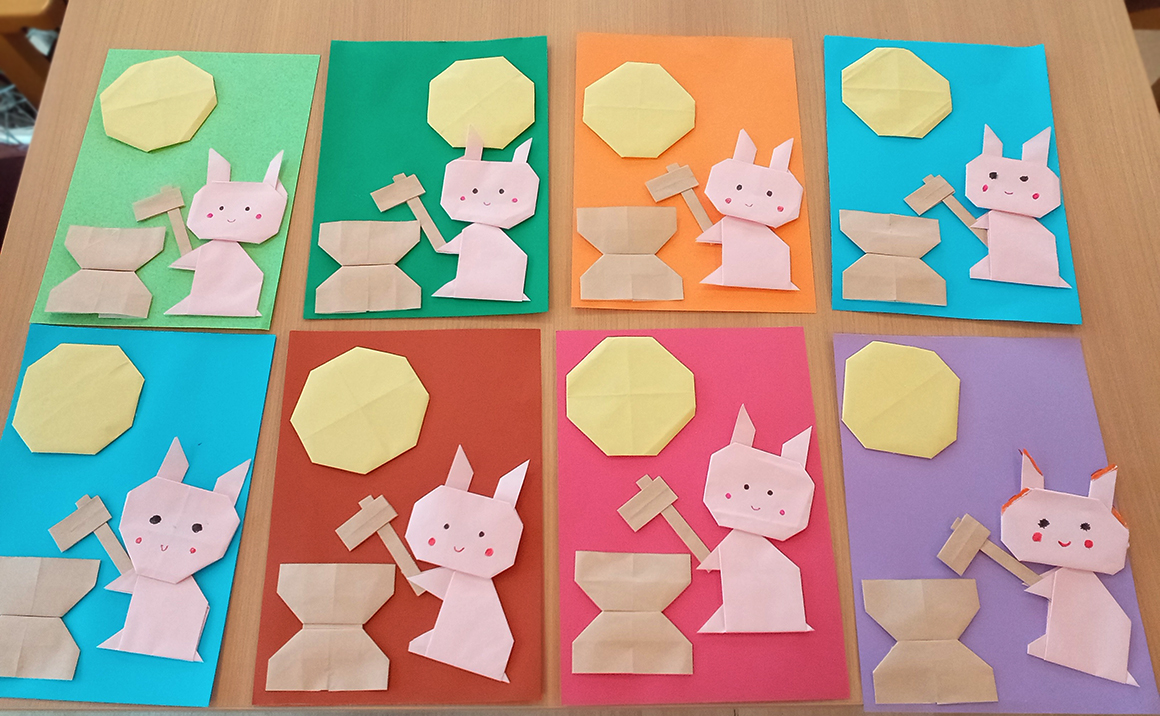 季節に合わせたお手本を用意し折り方の説明をしながら折っていただきます。