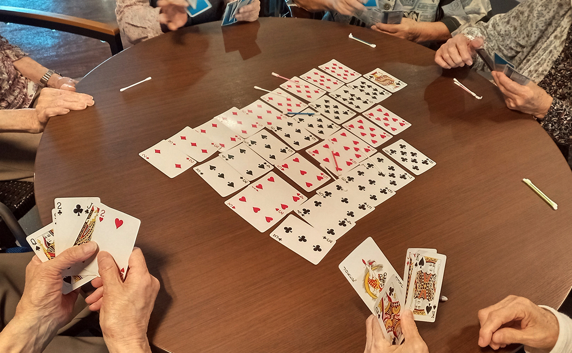 こんにちは! プレザンメゾン神戸白水より【ゲーム】の様子をご紹介いたします。 毎日の体操・おやつが終わった後に1階談話室にて入居者様が集まられてゲームが始まります♪ トランプやテーブルゲームなどで白熱した時間を過ごしておられます。 真剣な表情をされたり笑い声が聞こえてきたりと、皆様にとってよい刺激になっているようです(^^♪