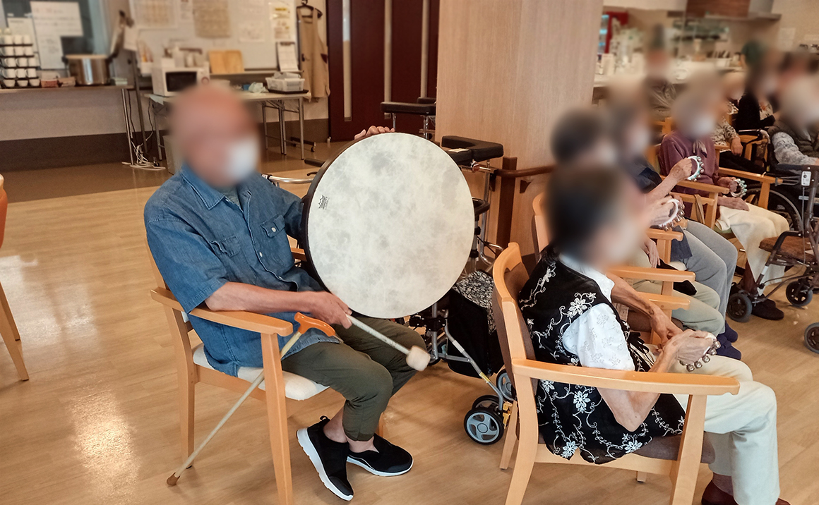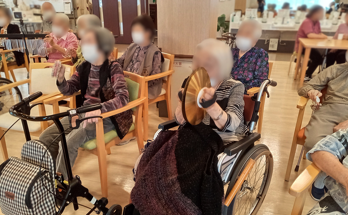 こんにちは! プレザンメゾン神戸白水より【ミュージックケア】の様子をご紹介いたします。 毎月ボランティアによる ♪だれでも どこでも いつでも 楽しめる音楽療法♪ を開催しております。 ミュージックケアのねらいとして・・・ ・音楽の特性を生かし、心身に快い刺激を与え情緒の回復や安定を図る ・運動機能の改善を促し、心身と生活に好ましい変化を与える という事があるそうです。 真剣な表情で取り組まれ、それぞれの役割を持っての合奏はボランティアの方も驚かれる演奏となりました(^^♪