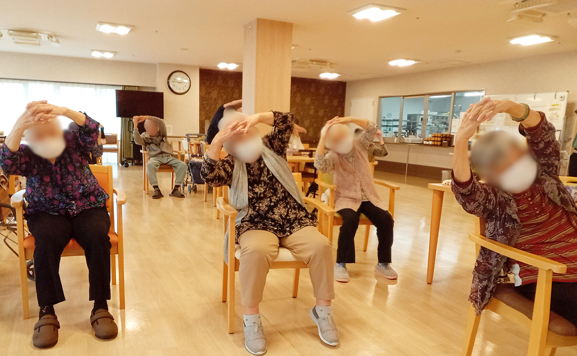 プレザンメゾン神戸白水より【健康体操】の様子をご紹介いたします! 当施設ではマッサージ治療院より体操指導に来て頂いています。 高齢者の皆様が鍛えるとよい筋肉を負担のないように動かす体操を教えて下さいます。 参加者の皆様は真剣に取り組まれ、一生懸命身体を動かされています(^^) 職員も一緒に参加し筋力アップを目指しています♪