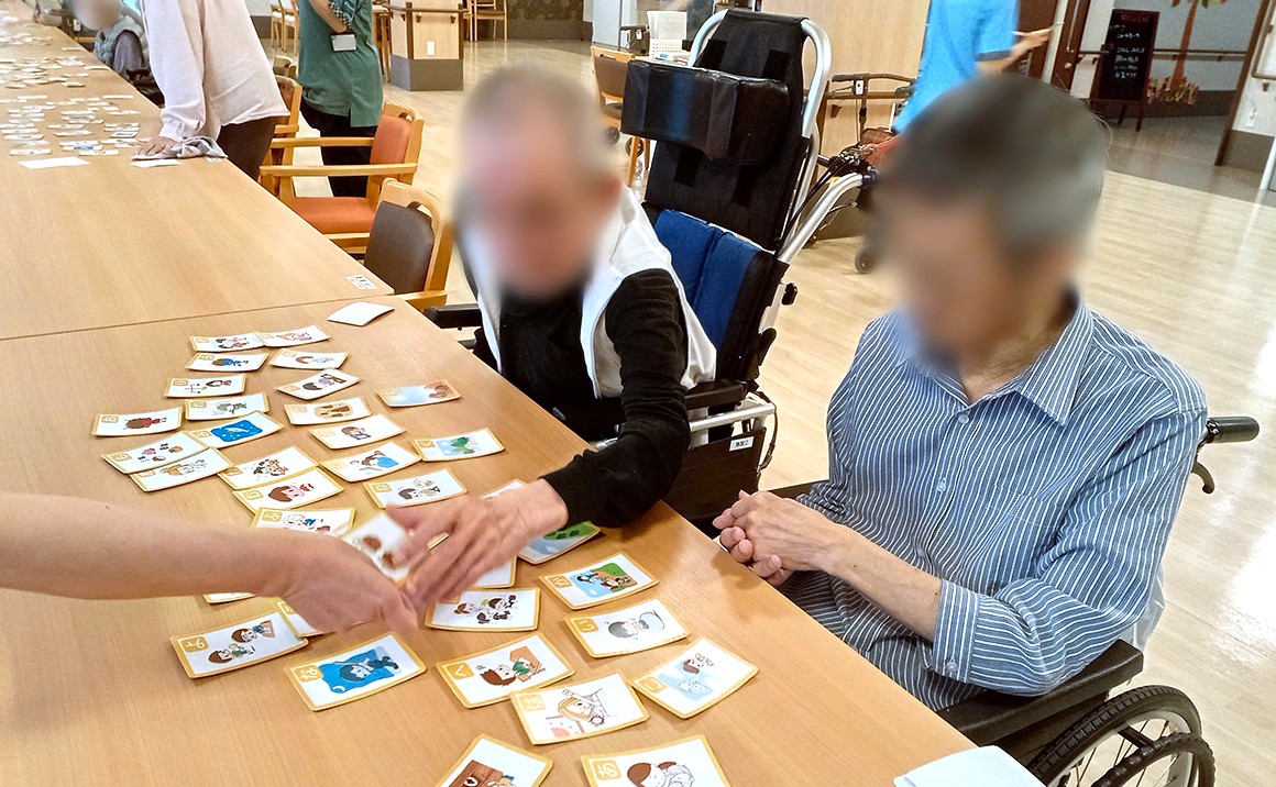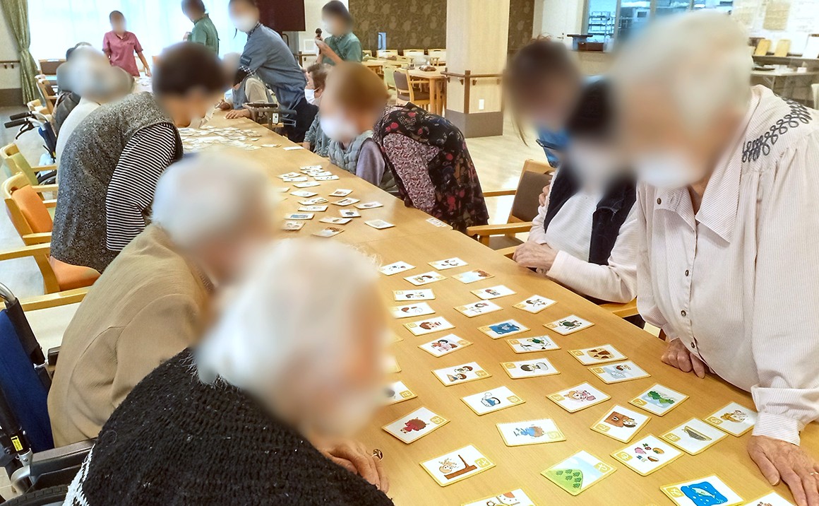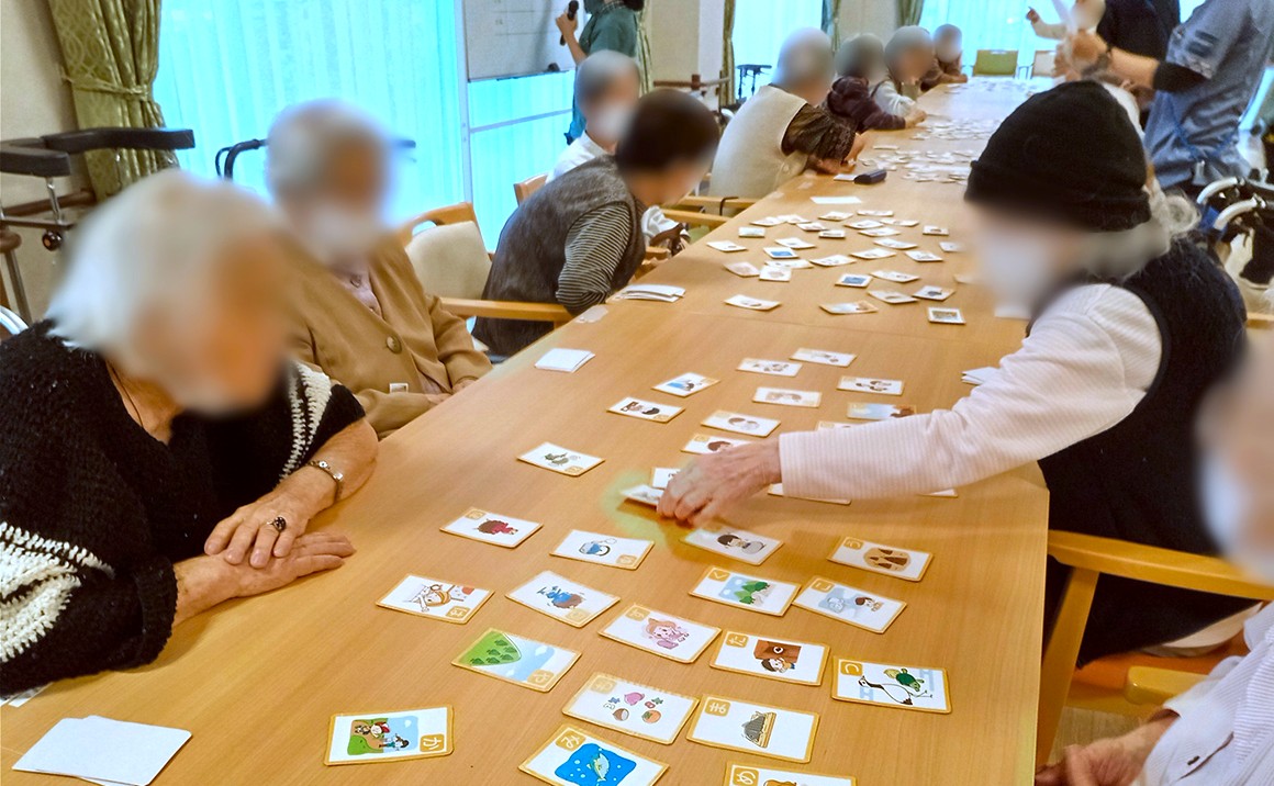 ①認知機能の刺激:札の文字や絵を見て判断することで、脳の活性化につながります ②身体活動:札を取る動作や立ち上がる動きが、軽い運動になります