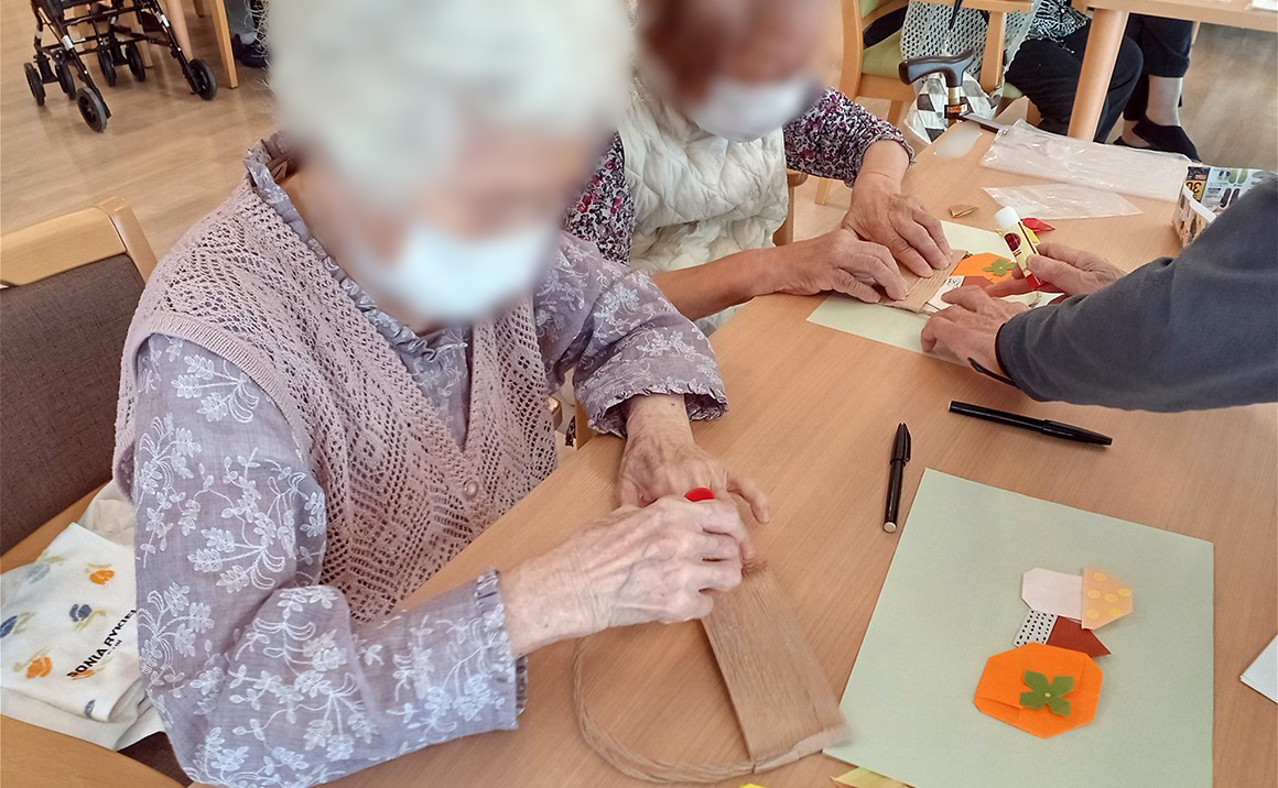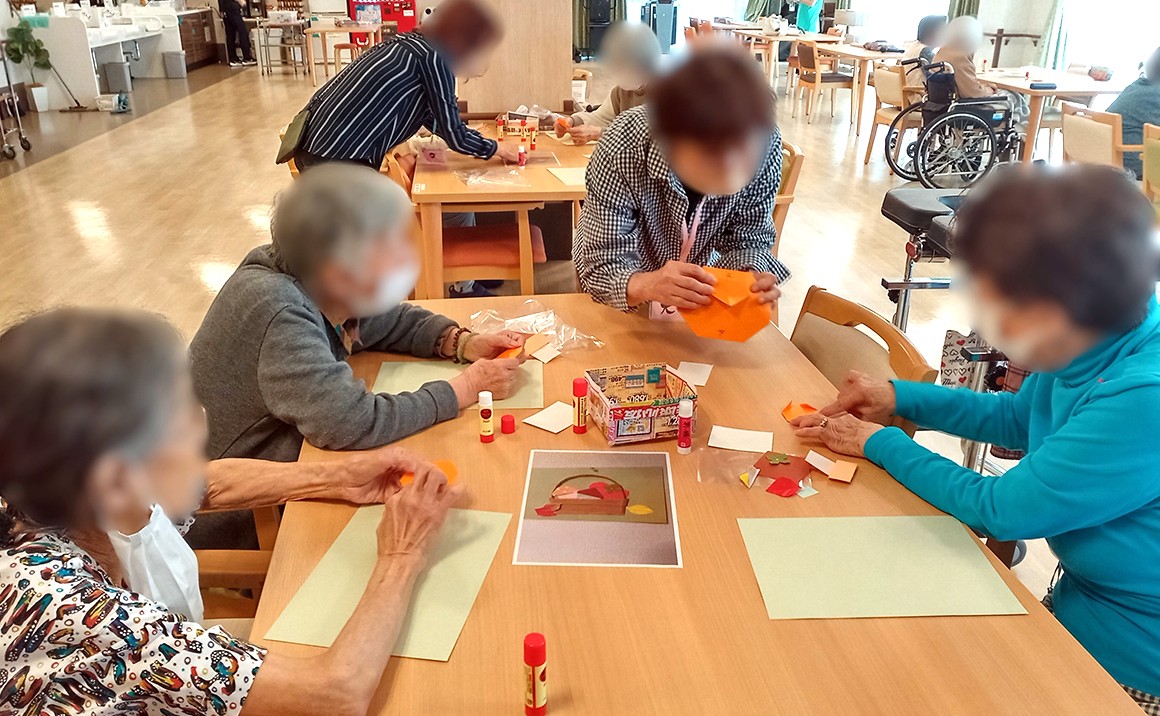 プレザンメゾンより【おりがみ教室】の様子をご紹介いたします! 当施設ではボランティアの方におりがみを教えて頂く【おりがみ教室】を開催しております。 季節に合わせた作品を折り方や貼り方の説明して頂きながら入居者様に折っていただきます。 参加者の皆様は折り紙を手に取りながら、真剣な表情で作品作りに取り組んでおられました(^^) 今回の作品は籠に入った秋の味覚です! おりがみを通じて参加者同士の交流も自然と生まれ、和やかな雰囲気の中で楽しい時間を過ごしていただけました♪