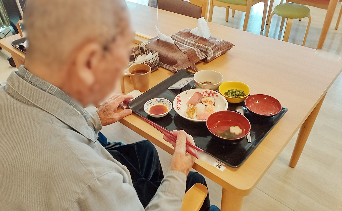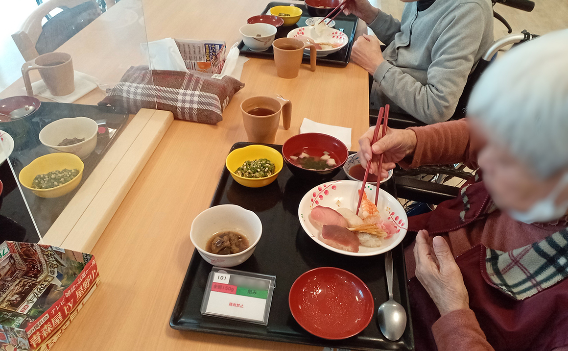 プレザンメゾン神戸白水より【寿司バイキング】の様子をご紹介いたします! 皆様が大好きなお寿司の日はお好きなネタがお替わり自由になっています(^^) 寿司バイキングのポスターを掲示した日から、楽しみにしている入居者様もおられ、 当日は次々に「お替わり下さい!」とお寿司を召し上がられました♪ 「次はいつしてくれるの?」「美味しかった~」と笑顔がいっぱいのランチとなりました(^^)