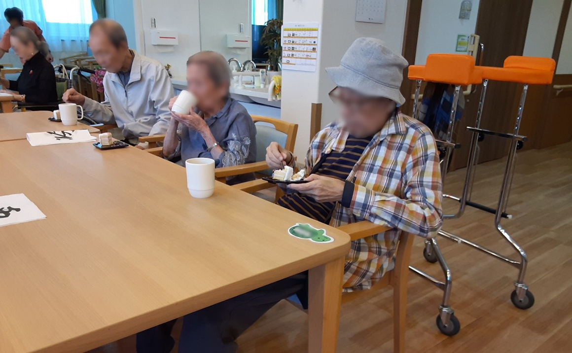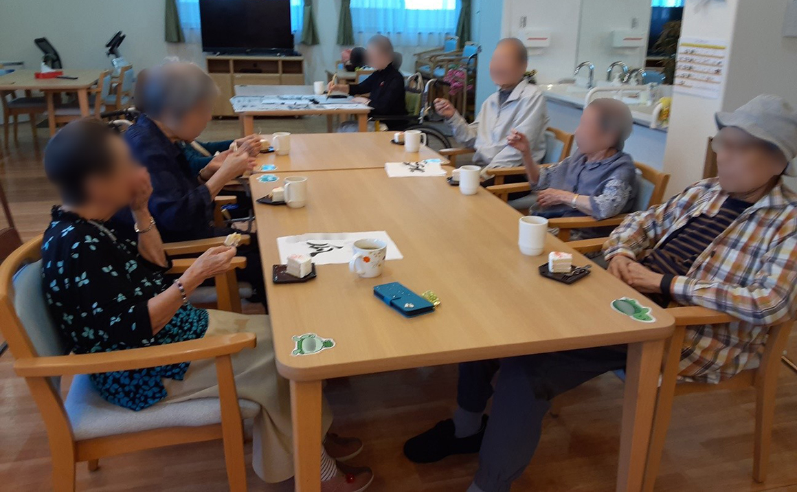 こんにちは、プレザンメゾン美浜です 先日はお習字レクリエーションのあと みなさん仲良くおしゃべりしながらティータイム☕ とっても楽しそうでした☺