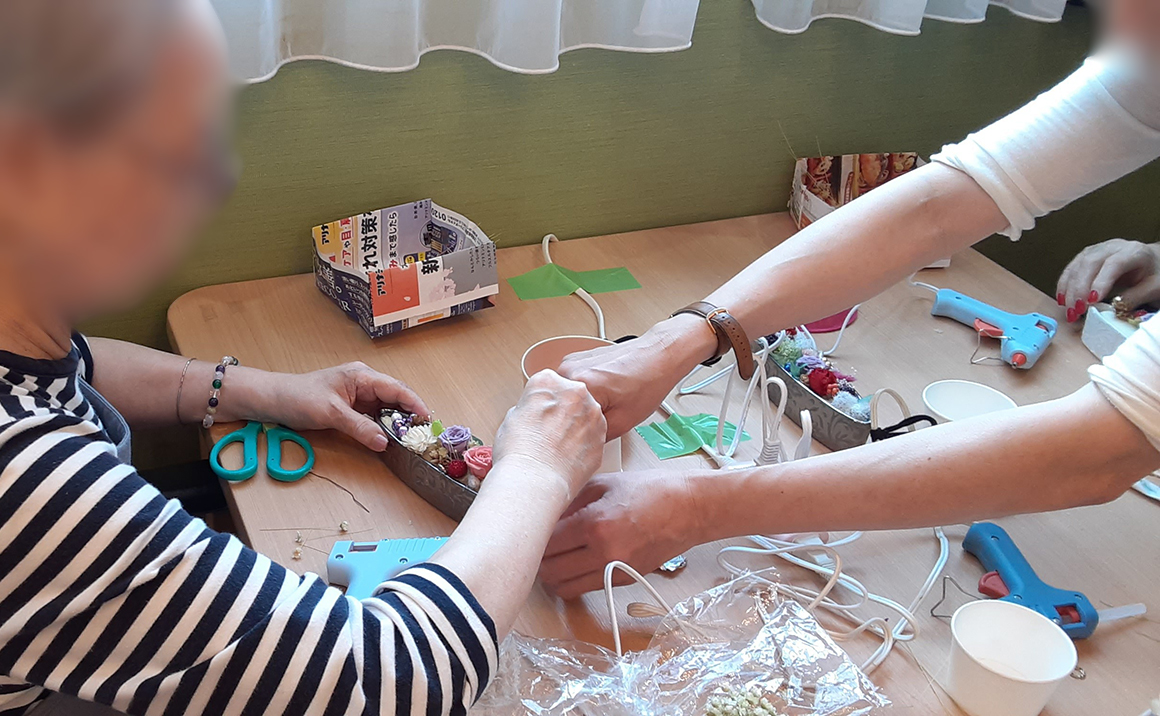 さてさて、今回はフラワーアレンジメント会です🌺 生け花が多いですが、今月は枯れないお花、ブリザーブドフラワーでした🌹 グルーガンを使用しながら丁寧に作りました。 皆様素敵な作品が出来ました✨