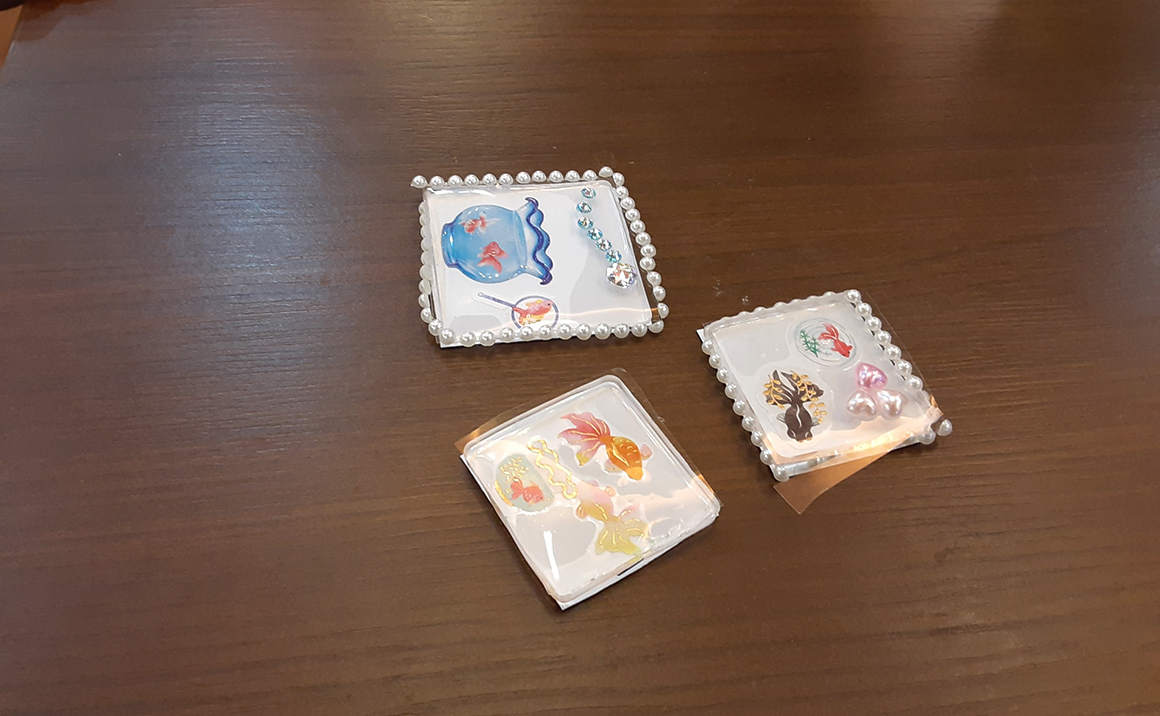 今回はですね~ 夏だ!! きらきら金魚ちゃんマグネット工作続編! ラインストーンをドンっ!と貼る方やちりばめる方とそれぞれきれいな作品が完成しました°˖✧◝(⁰▿⁰)◜✧˖°