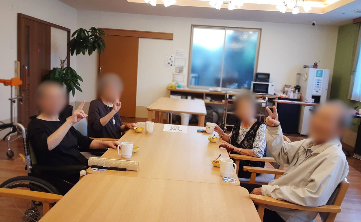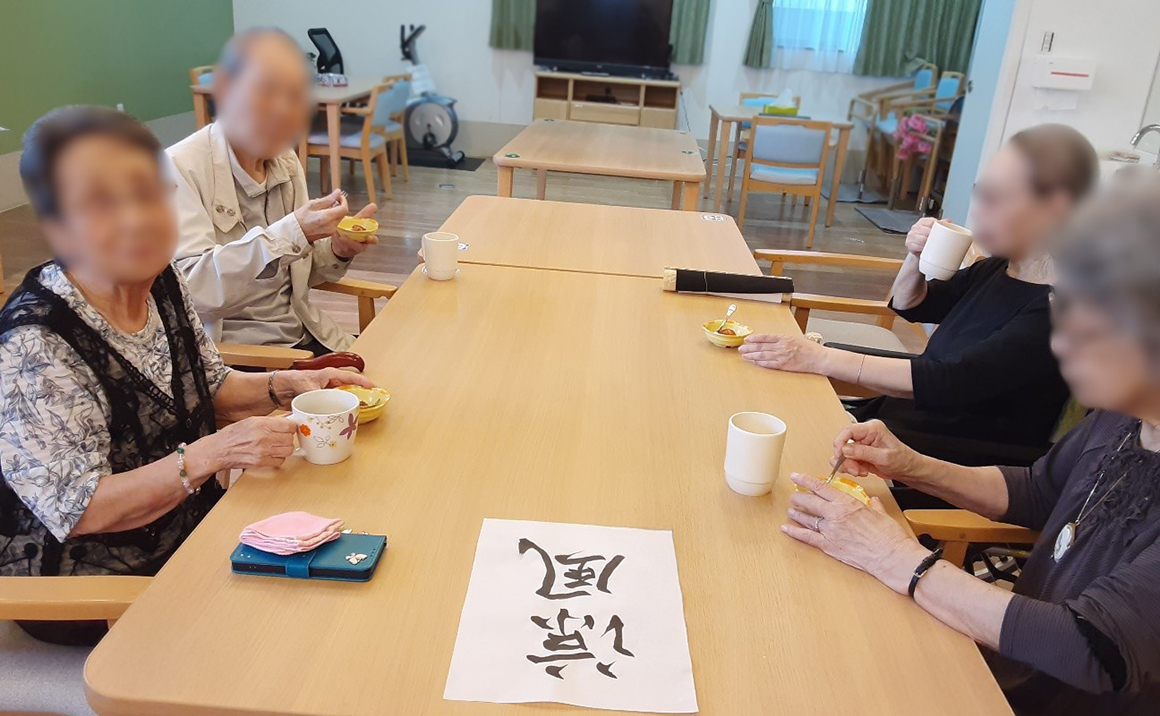 本日は、先日お習字レクのあとに入居者様で楽しそうにお茶会を開催されていましたので その時のお写真を📸 ニコニコですね~