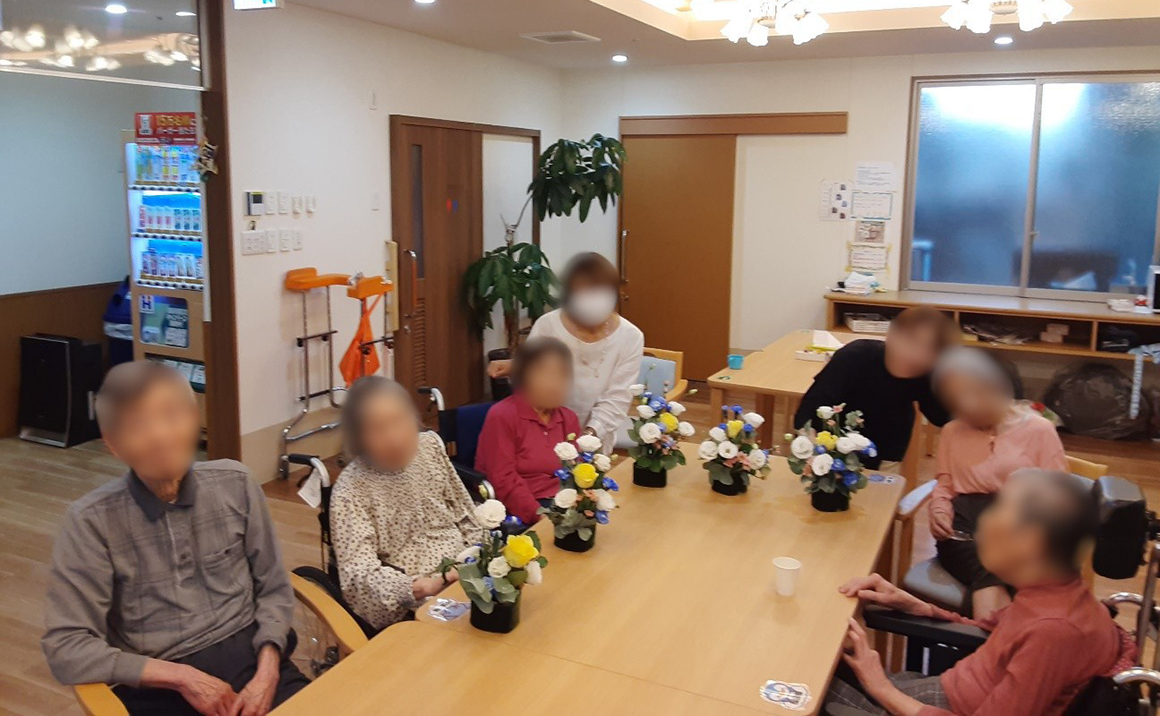 こんにちはプレザンメゾン美浜です☺ そうです 今回もフラワーアレンジメント会です🌺 外部講師の方をお呼びして開催しています。 フラワーアレンジメントも2,3年程開催していますが毎回素敵な作品を作られています✨ 最後はみんなで記念撮影📸