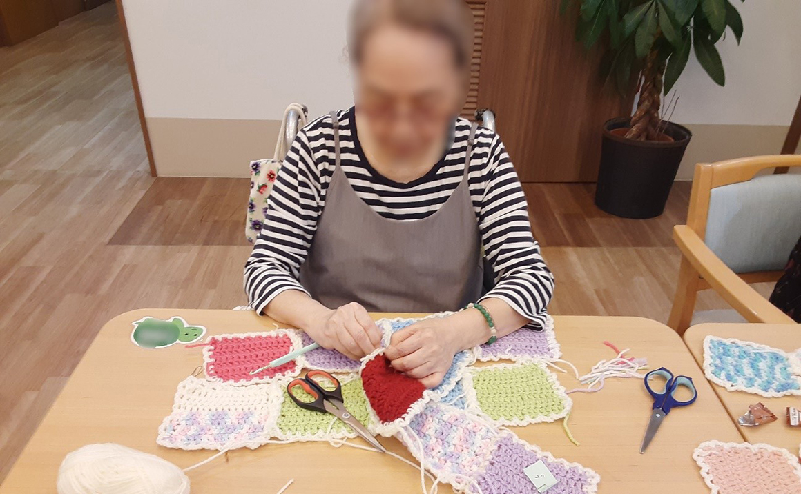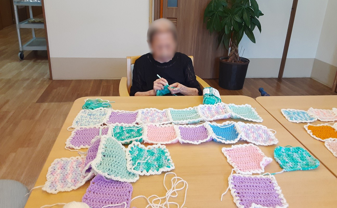 以前ブログにも載せておりました編み物レク 超大作がだんだんと出来上がってきています✨ コースターサイズの物をいくつも編んで編んで編み続けてひざ掛けを作っています いろんな色で編んでいて素敵です☺ まだまだ先は長そうですが あと少しで完成するのかしないのか…楽しみです🐈