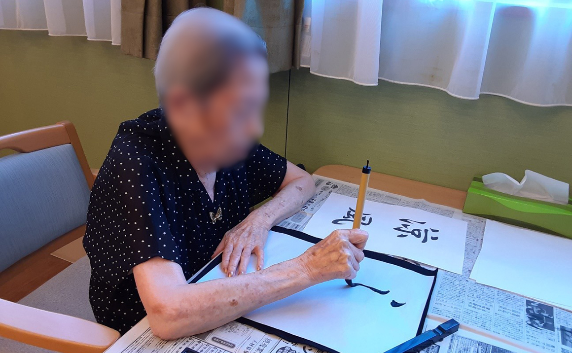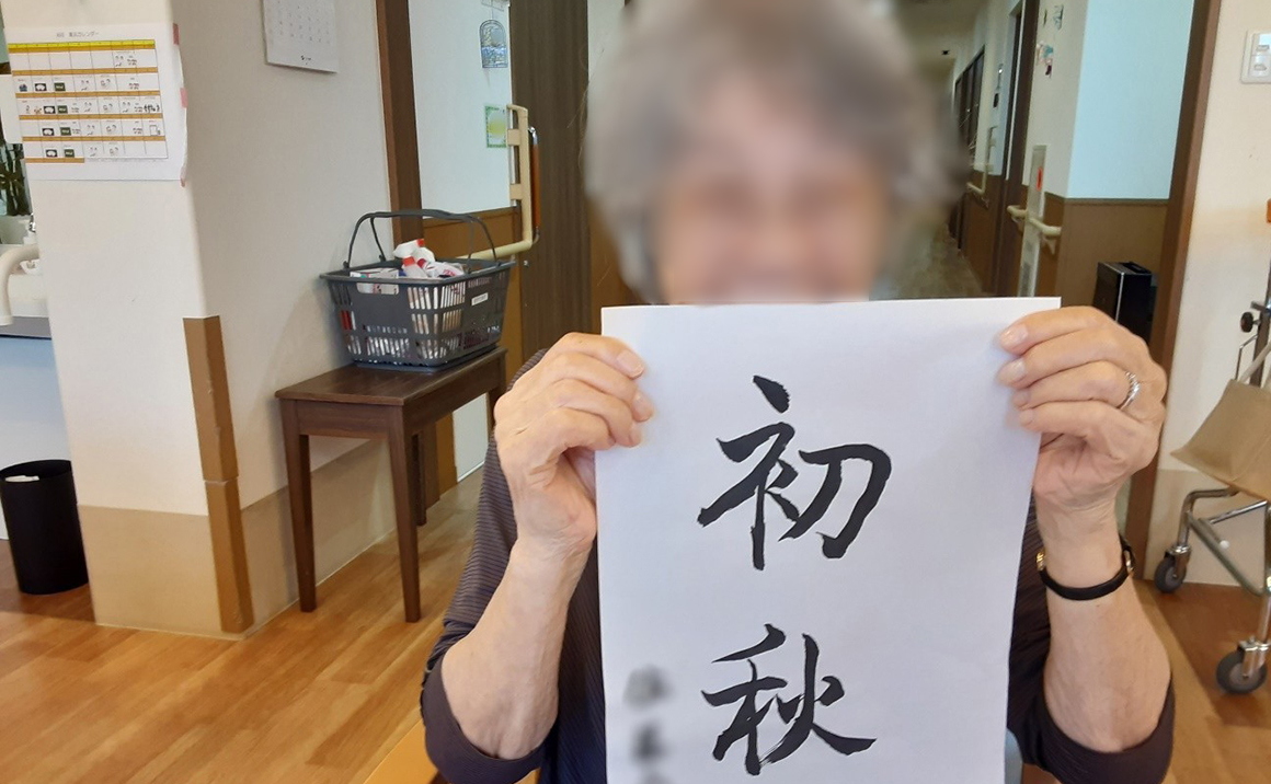 本日も始まりましたお習字会🖌 だんだん秋を感じる今日この頃🍃 お手本を見ながら書き書き カメラをむけると素敵な笑顔~☺ 来月は何かな~~🐈