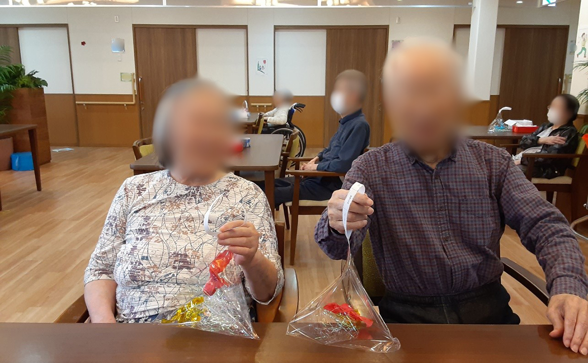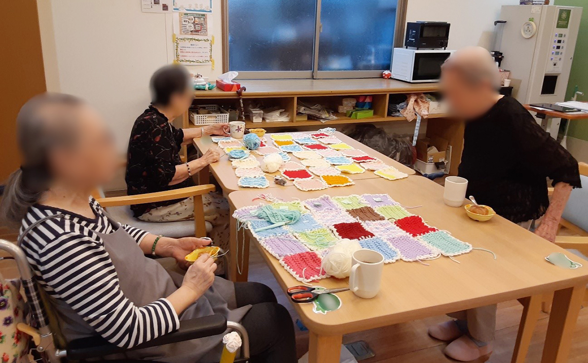編み物レクもコツコツ編み進めていきひざ掛けの完成まであともう少し…