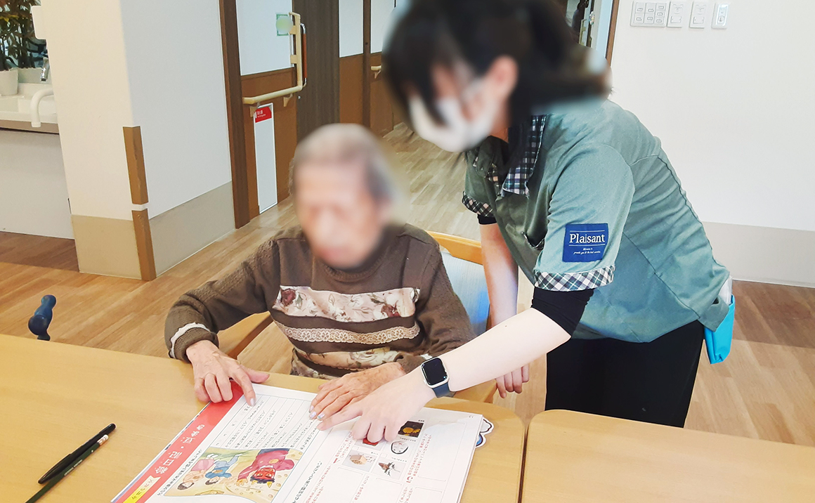職員が教師役になり算数、理科、社会、英語、国語などの授業を行います。 字を書いたり、昔の思い出を思い出したり、脳トレにバッチリです。