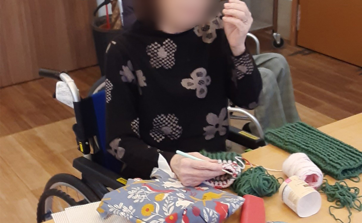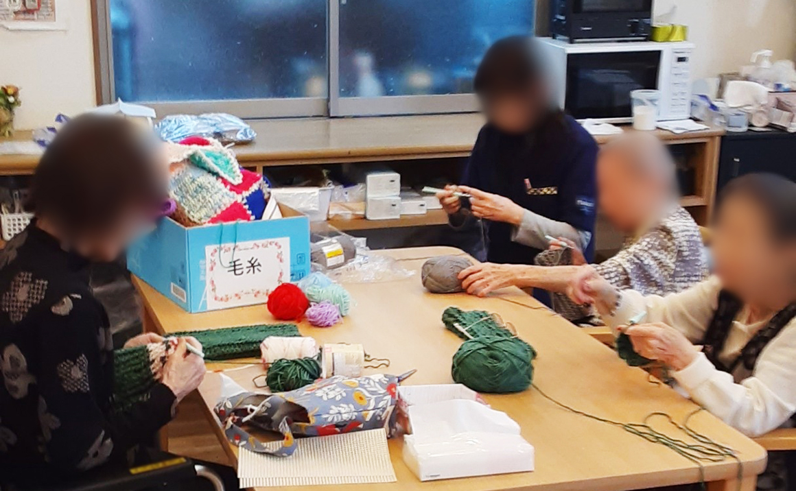 皆さま、編み針を手に取りながら、ひと目ひと目ていねいに編み進めておられます。「もう少しで完成ね」「この色かわいいね」と会話も弾み、和やかな時間が流れています。最初は「できるかな?」と少し不安そうな方もいらっしゃいましたが、編み進めるうちに手も慣れ、だんだん形になってくると自然と笑顔がこぼれます。