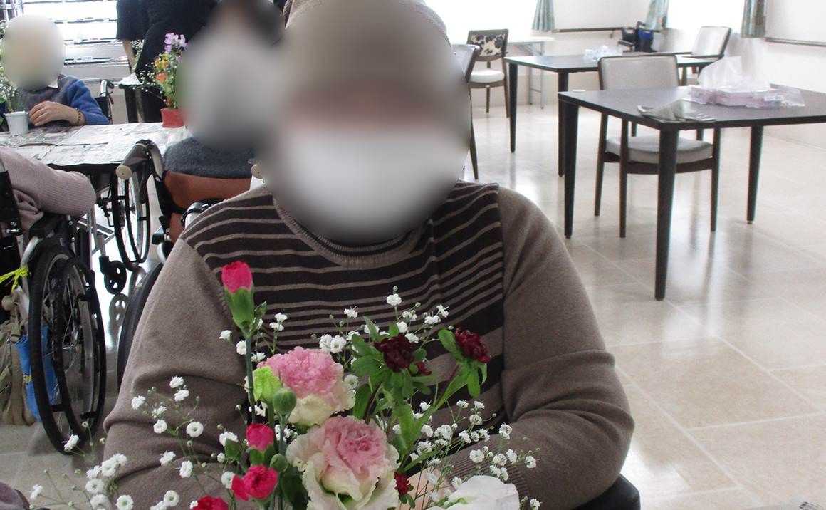 お花がきれいに飾れ居室に飾られました。