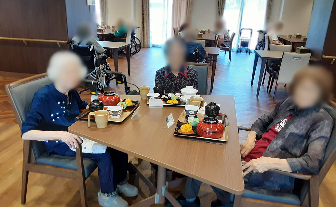 ご希望があった方のみ鰻の蒲焼きを召し上がりました。 今年の鰻も肉厚でふっくらした食感が特徴でボリュームがあり、食べ応えも十分で大変好評でした。 入居者様が今年も「美味しい」と仰っており、写真に写られる際も満面の笑みでした。