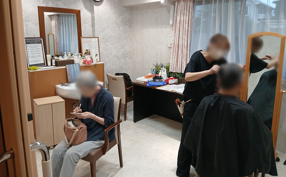 当施設では毎月、美容師さんが訪問してくれます。そこで皆様がカットされたり、