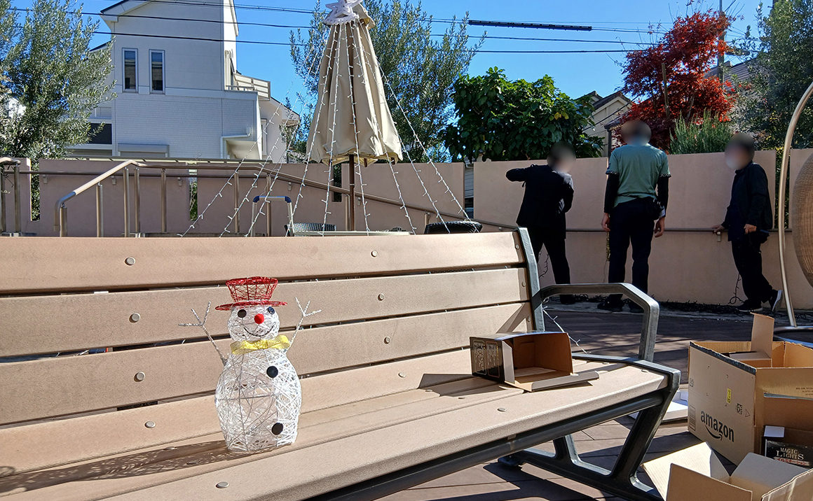 プレザングラン中野鷺宮 テラスにてイルミネーション準備☆