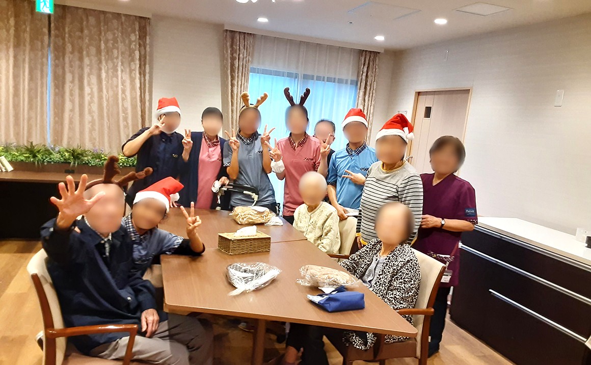 12月25日(木)にクリスマス会を開催しました。 まずは、毎年恒例の『CHA.ゴス クリスマス ゴスペル コンサート』! ご利用者様とご家族、職員みんなでクリスマスソングをたくさん歌って大盛り上がり! さあ、クリスマスといえば、やっぱりケーキ ケーキをほおばっているところに、トナカイ2頭がサンタをソリに載せて登場! ささやかながらプレゼントを差し上げました。 ご利用者様・職員、みんなで “Merry Christmas !!”