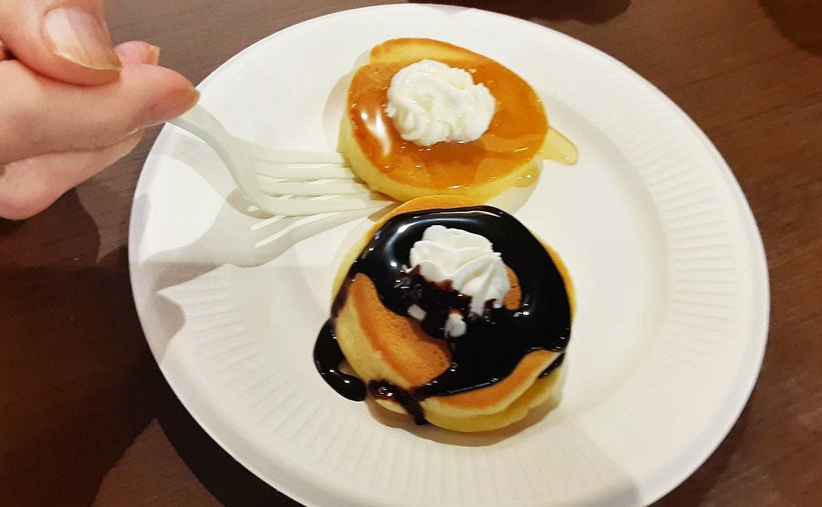 2月14日に当施設でバレンタインデーイベントを行いました。 職員がホットケーキを焼き、ホイップクリームやメープルシロップ、チョコレートソースをかけて入居者様に召し上がって頂きました。 珈琲や紅茶も提供し、満面の笑みで「美味しい。」と仰っていました。何度もおかわりをされる方もいて、大盛況でした。