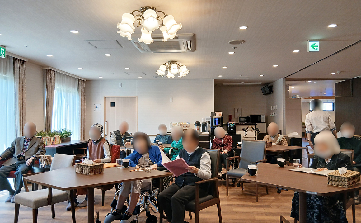 始まりました。実は2月から毎月第2水曜日に行われています歌声喫茶です。当施設の入居者様もとても楽しみにしているイベントです。