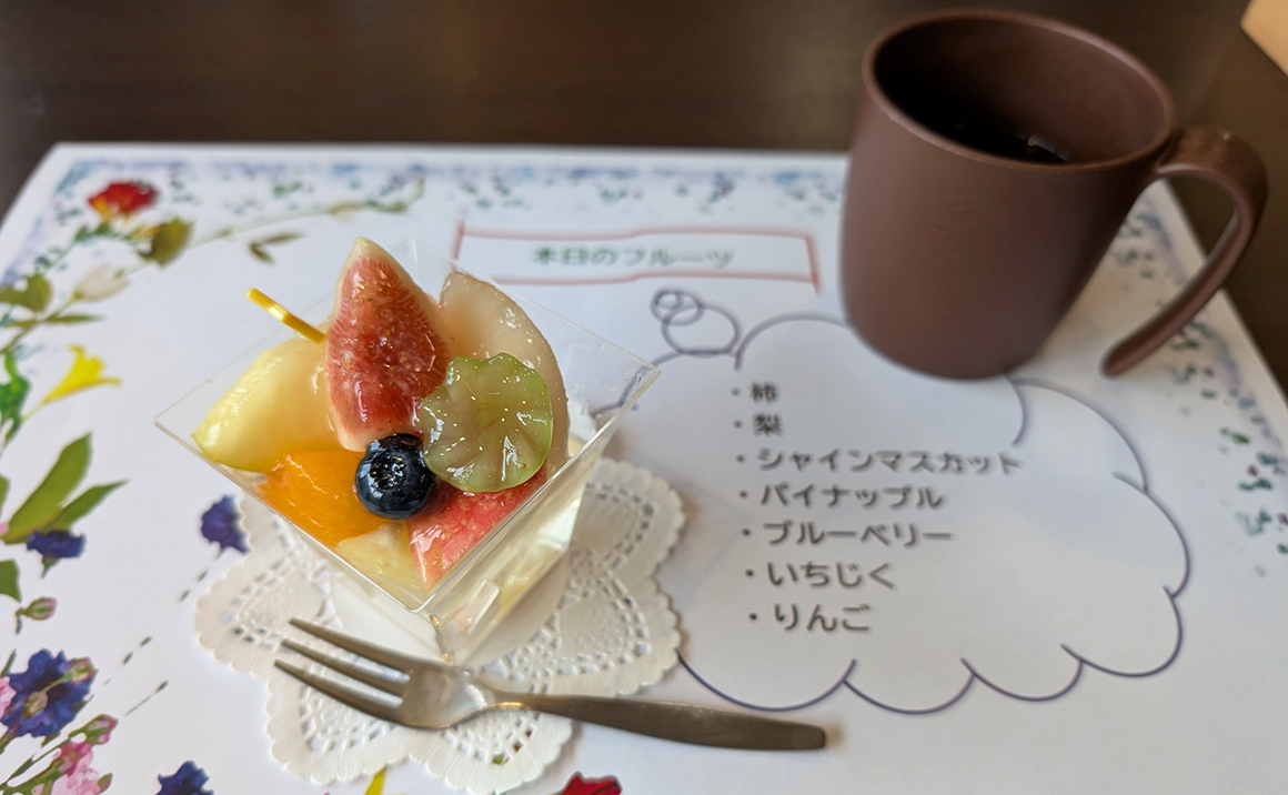 コンシェルジュによる有料レクリエーションでフルーツのお取り寄せをいたしました。 キムラフルーツで季節のフルーツをお願いしました。 柿、梨、シャインマスカット、イチジクなど季節の果物をいれていただき、見た目も鮮やかで宝石のようでした。