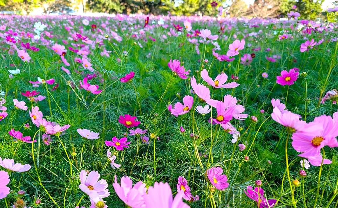 武庫川の河川敷に黄色とピンクの絨毯がひろがっていて、青空とのコントラストがとても綺麗でした。 気候も良く、短い時間ですが季節を感じていただくと共にリフレッシュしていただける時間となりました。