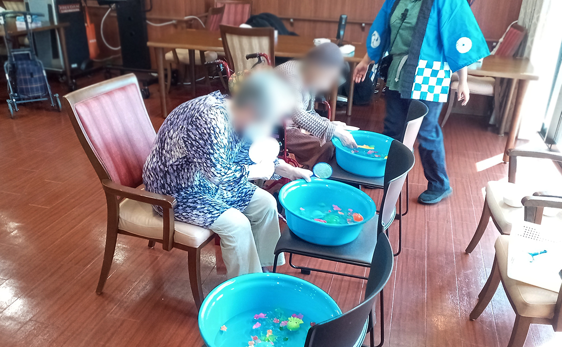 8月の行事として夏祭りを開催いたしました。 職員は法被を身にまとい、食堂はお祭りムードに。