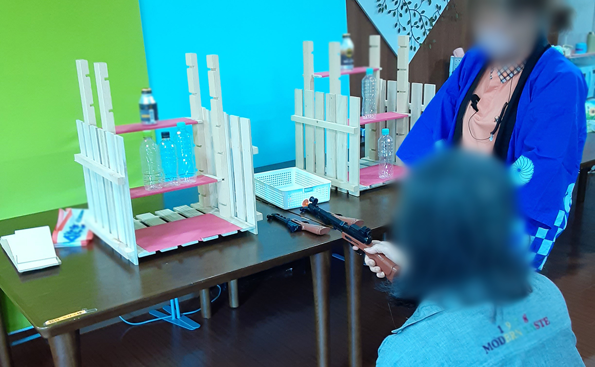 射的やヨーヨー釣り、金魚すくい、シャボン玉をして 最後はかき氷を食べてリフレッシュ。