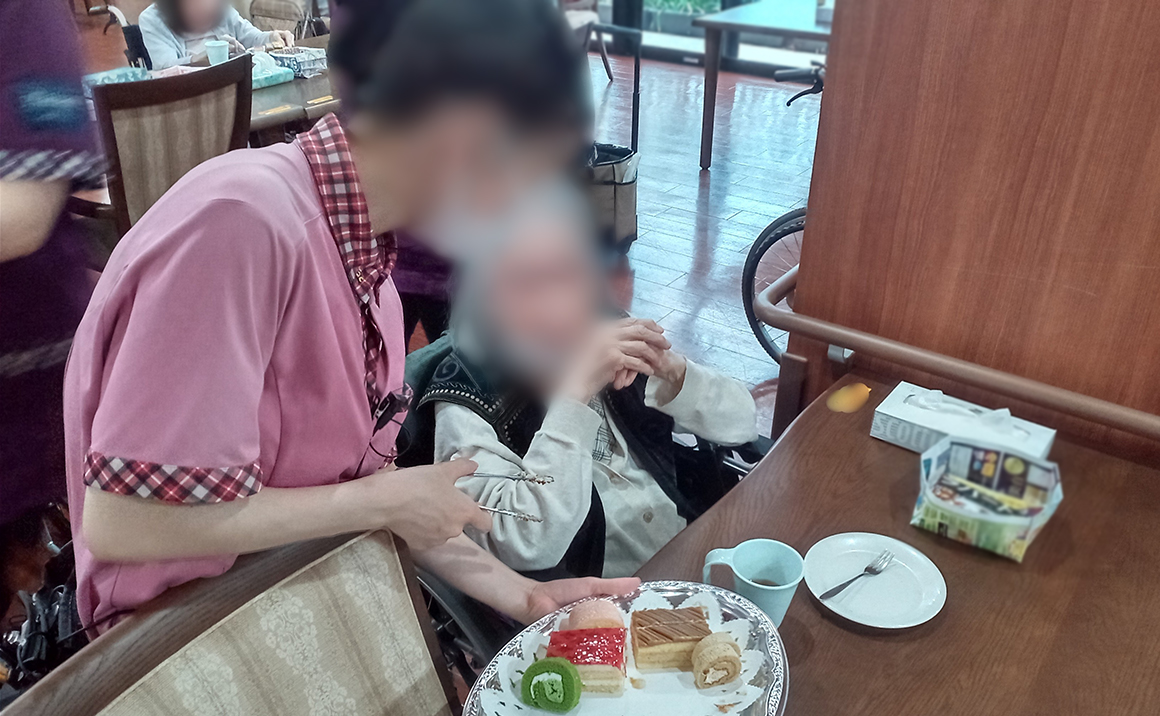 今日はケーキバイキングがありました。 チョコケーキやティラミス、ロールケーキなど お好きなケーキをお好きなだけ選んでいただきました。