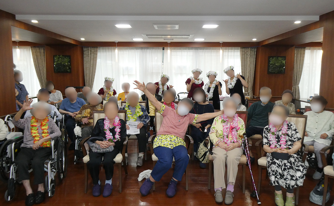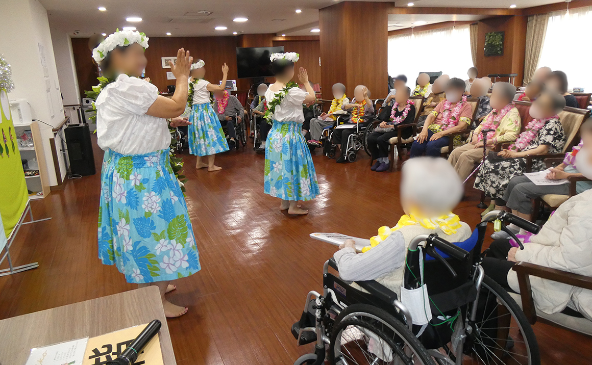 本日はケア21フラクラブによるフラダンスを 皆さまにお楽しみいただきました。 心地よいリズムに自然と笑顔がこぼれます。