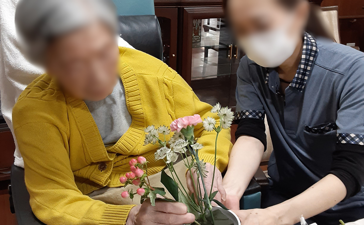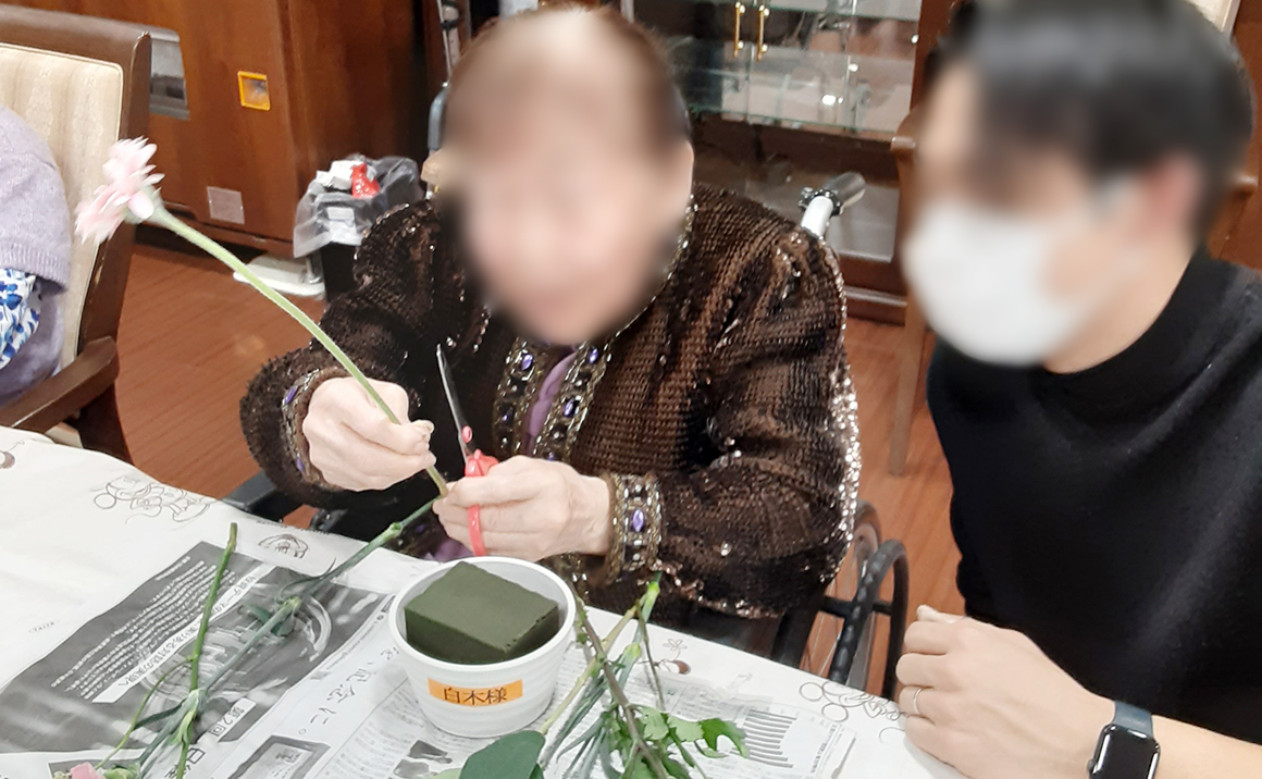 フラワー教室のご様子です🌸 今月はカーネーションやスプレー菊、ゴットなどが届き どのお花を中心にもってくるか、悩みながら アレンジメントされておりました(^O^)