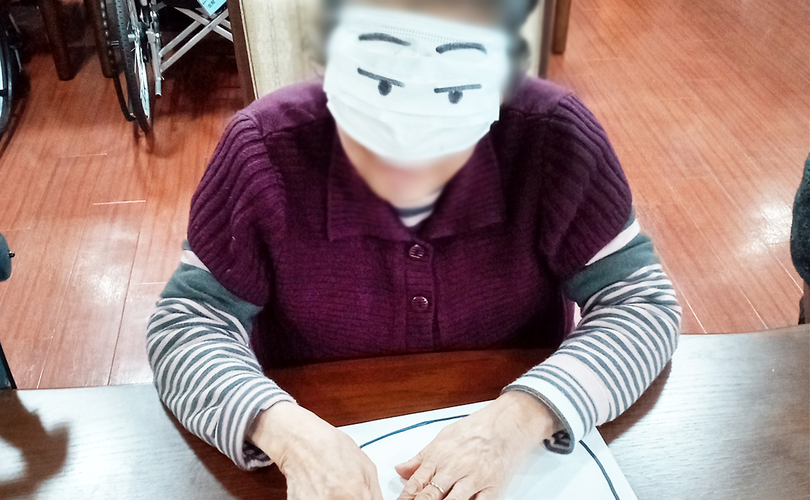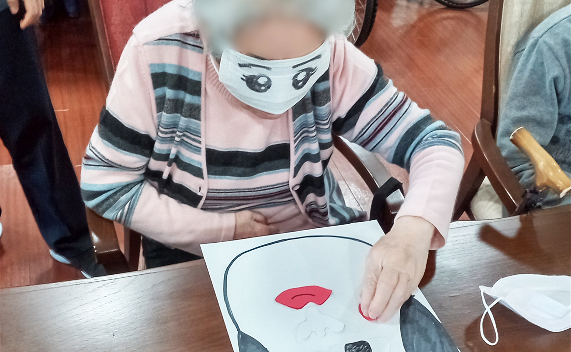本日は皆さまと福笑いを楽しみました。 「こっちで合ってる?」「これは何?」と言いながら 周りの声を頼りに一生懸命挑戦されていました。