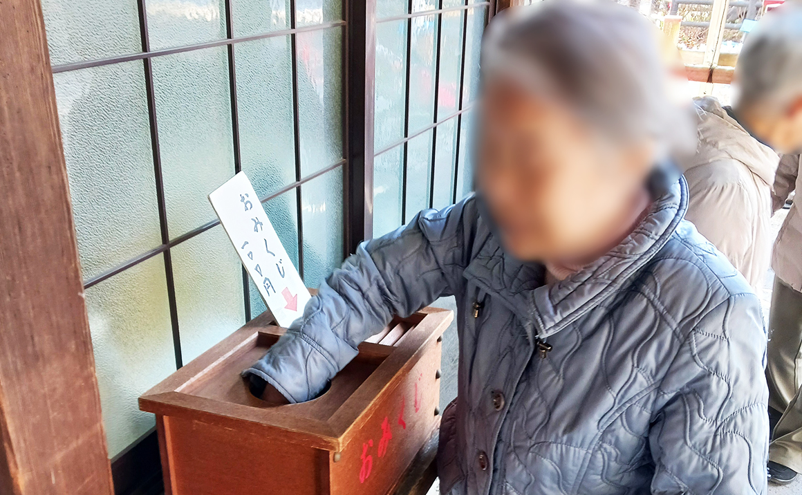 写真はおみくじを引いているときのものです。