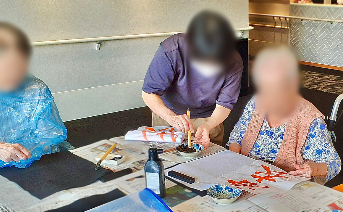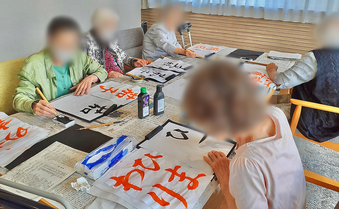 この日はご入居者様が待ちに待った、書道教室を開催いたしました。