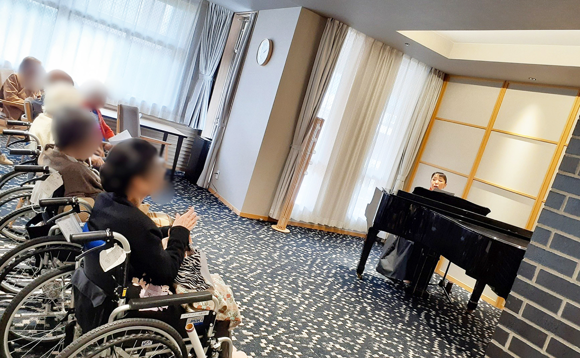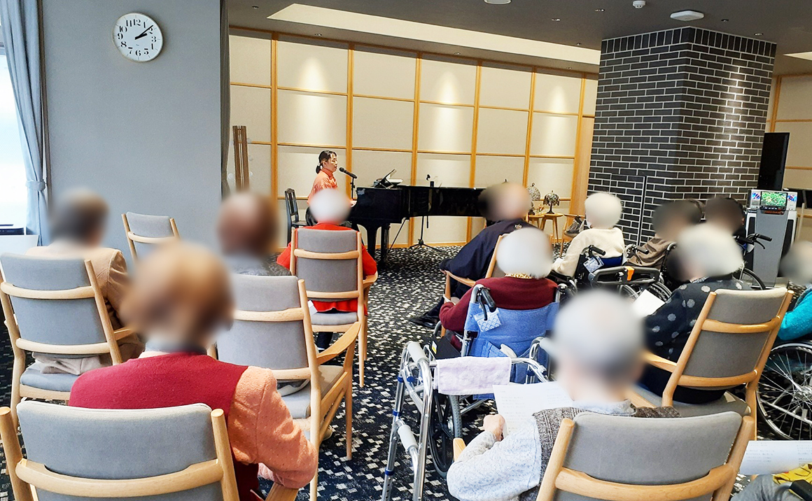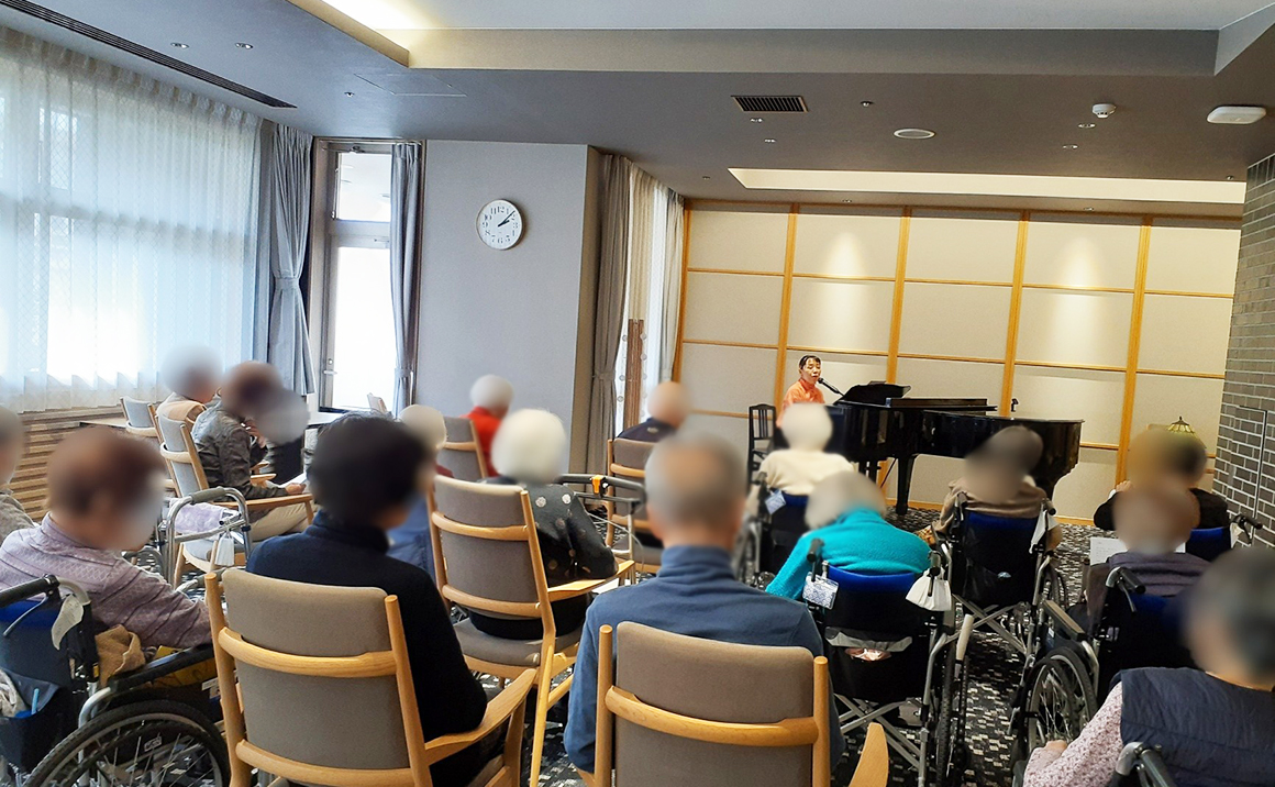 ピアノ弾き語りで「ふるさと」「春よ来い 」「早春賦 」[うれしいひなまつり」など演奏してくださりました。 皆様一緒に歌われたり、手で音頭をとったりしてそれぞれ楽しまれていました。