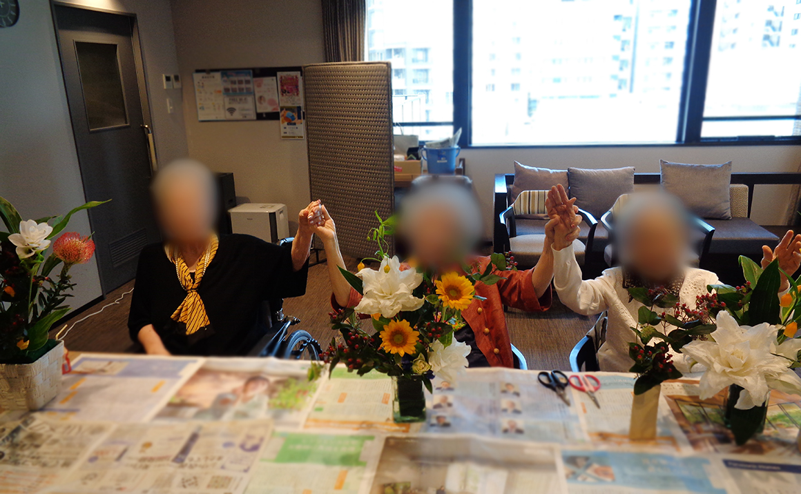 お天気が良ければ、前日に参加されるご入居者様と一緒に花屋さんへ活ける花を選びに出かけます。