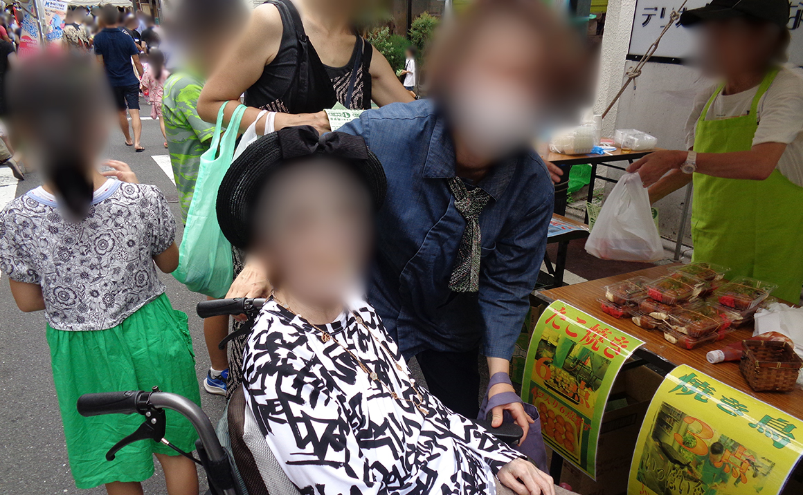 ご入居者様もスタッフと一緒に大賑わいの商店街に出かけられ楽しまれていました。