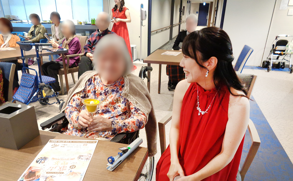 華やかで、優しく、トークも抜群に面白く、そして演奏もオペラが好きなご入居者様が「かつてスカラ座で聞いたオペラ以上の感動だった」とおっしゃったほどです。