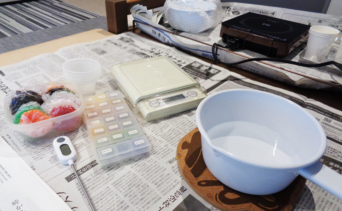 蝋を熱して溶かしたり着色をして、パーツを作っていきます。