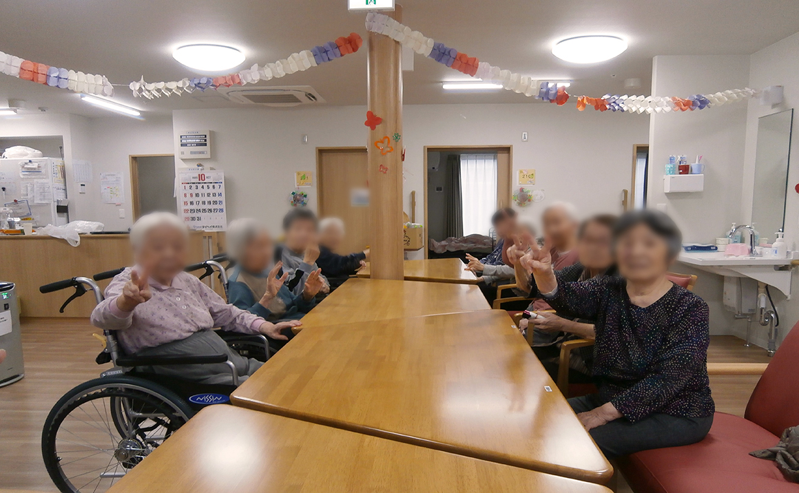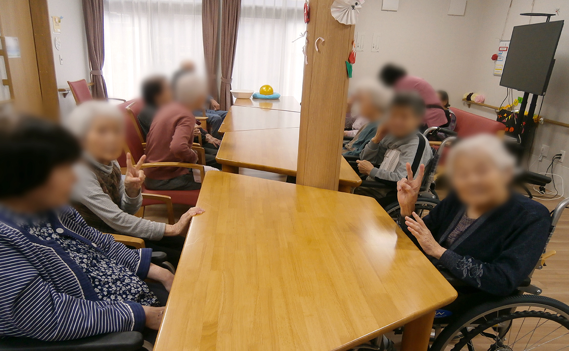 朝晩が、随分涼しくなって来ました。秋を感じますね! 秋と言えば食欲の秋、スポーツの秋いろいろあります。 そんな季節には身体を動かしたくなるものです。 今月は他のユニットへお邪魔して、合同レクリエーションを行いました。 身体を動かし、歌を歌い、皆様一緒におやつを召し上がり、わいわいがやがや賑やかに、みんな一緒に食べると美味しいなぁとおっしゃってました。