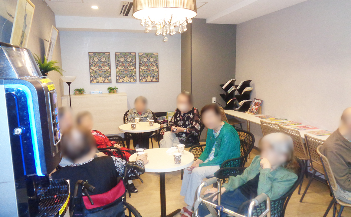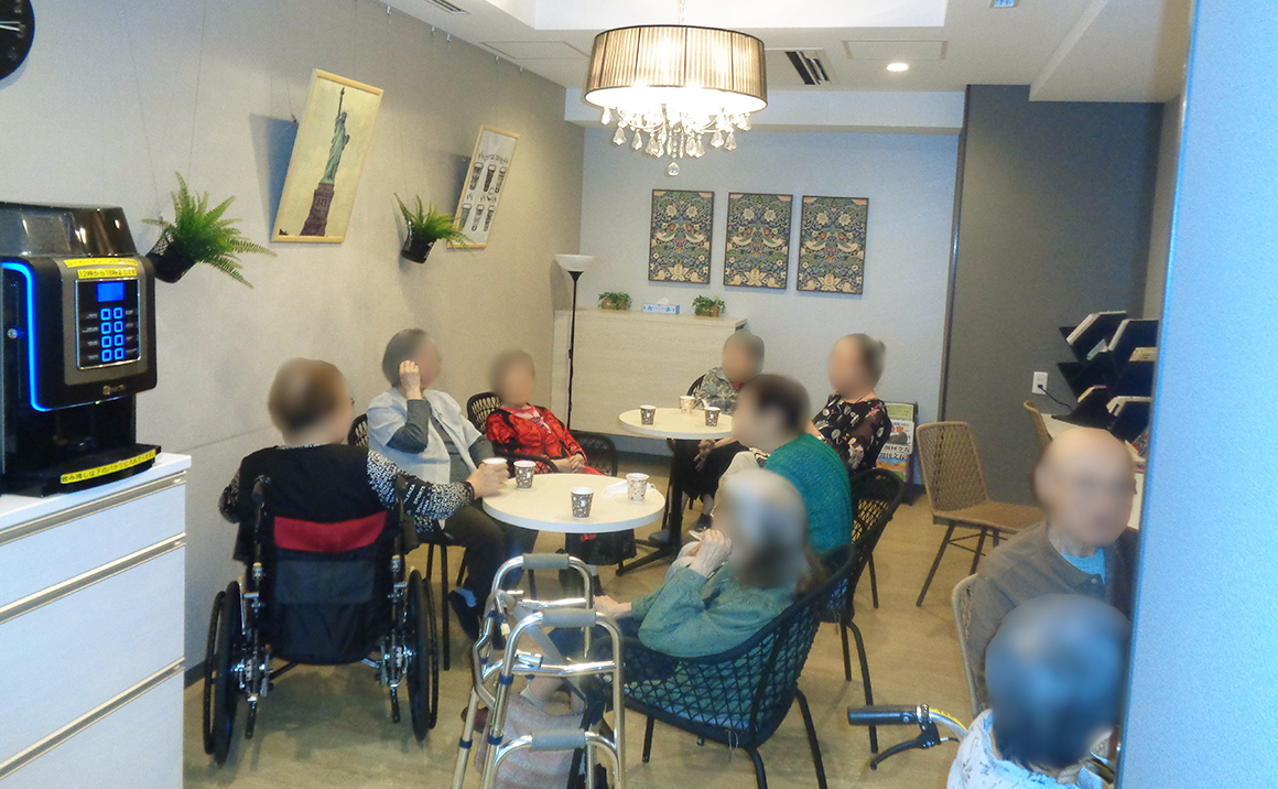 それと1階カフェコーナーにて、昼食後にカフェを飲みながら、談笑されている様子です。
