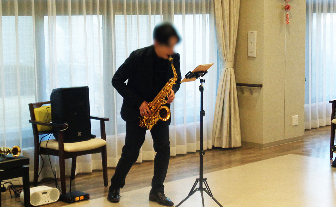 本日、サックス奏者の進さんが来てくださいました。