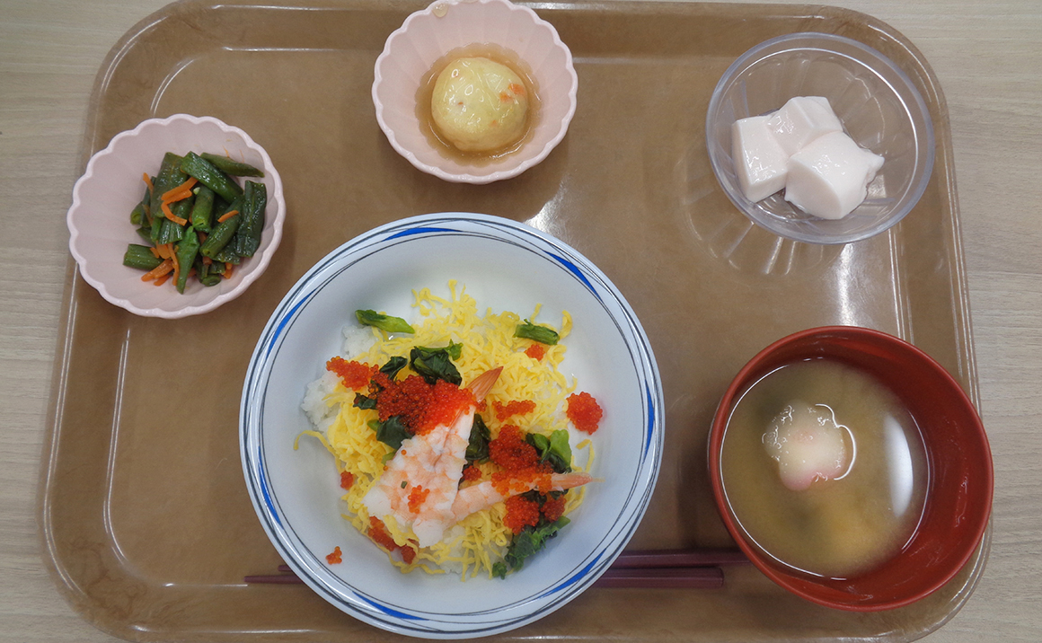 今日はひな祭り。施設でも雛人形を飾り、ちらし寿司を食べ、1年に1回のひな祭りの気分を味わいました。 こうやって食事で季節感を味わうことがないとひな祭りだということを忘れてしまいますよね。 なにせもう祝ってもらう年齢をとうに超えてしまっているので…。今日中には片付けないと嫁に行けない…。 嫁には何度行ってもいいですもんね~♡ さっ片付けましょ。