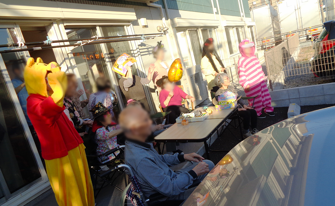 たのしい家戸田 本日はとだ笹目学童保育室の子ども達がハロウィンの仮装して遊びに来てくれました~ ご利用者様もハロウィンのカチューシャを付けてお出迎え~ 遊びに来てくれた子ども達に、シャボン玉をプレゼント! とても喜んでくれてご利用者様も大喜びです~ また学童の子ども達からも施設に感謝状を頂き、とても嬉しかったです!!