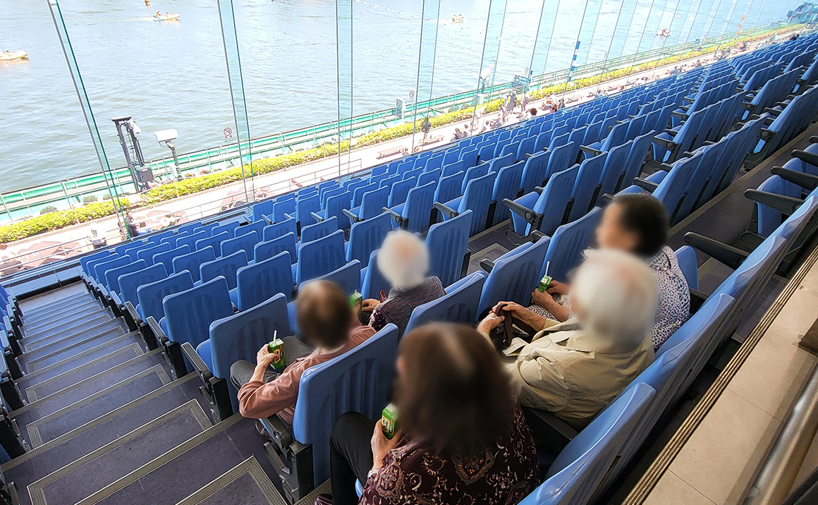 ボート場に着くと、休日のフェスということもあり、入場開始前から行列がすごく、ご利用者様も「すごい並んでるね~」と驚いていました~