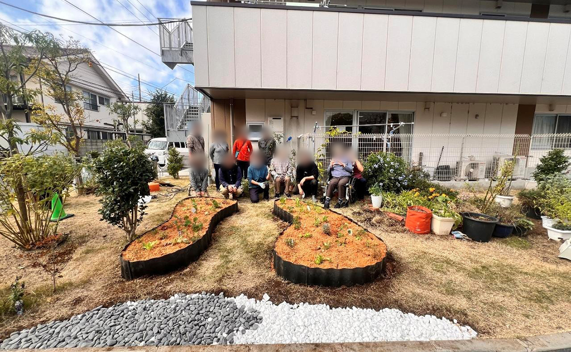今ある畑のとなりに高さのある花壇を設けたことで、車椅子の方や、しゃがむ姿勢が難しい方でも無理なく水やりや収穫が楽しめるようになりました!