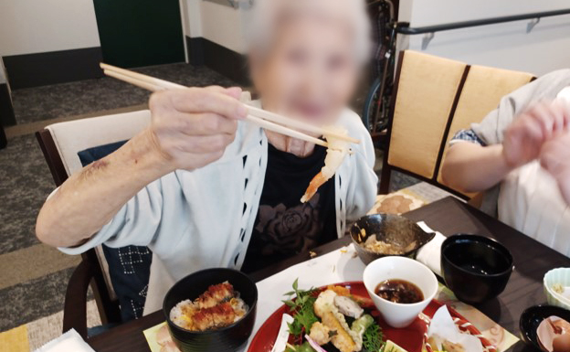 メニュー決めの際に見た写真よりも、色鮮やかで豪華な料理に皆様の目が輝き、ため息が出るほどです。 「こんなに豪華な料理は久しぶり」「外に行けない分ここでこんな料理食べれるなんて幸せやね」と笑顔がこぼれ、どれから食べるか迷いながら「一度で食べるのは勿体ない、夕食に残しておきたい」との言葉も出るほどでした。