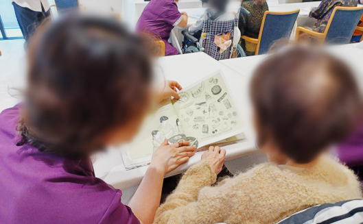今回は子供の頃に触れた物や出来事を色々な本を見たり、おはじきやあやとりをしたり、どんどん思い出が溢れ出し話が尽きない時間となりました。